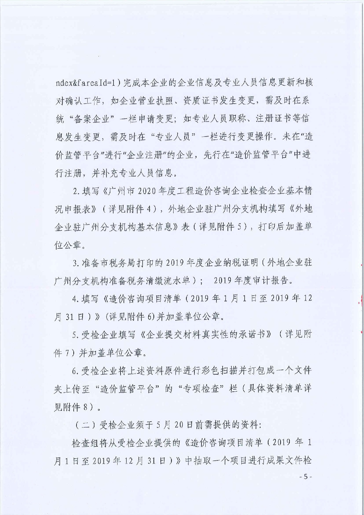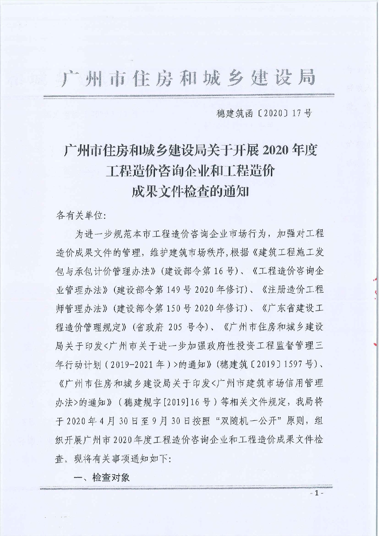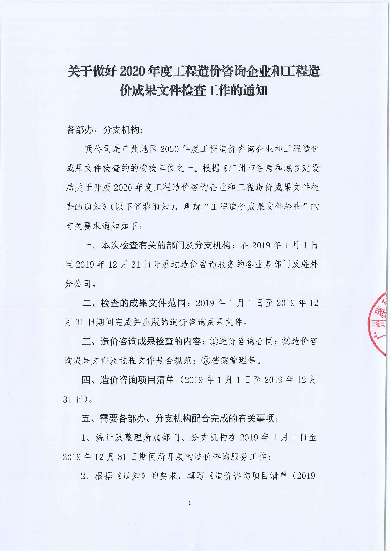 关于做好2020年度工程造价咨询企业和工程造价成果文件检查工作的通知