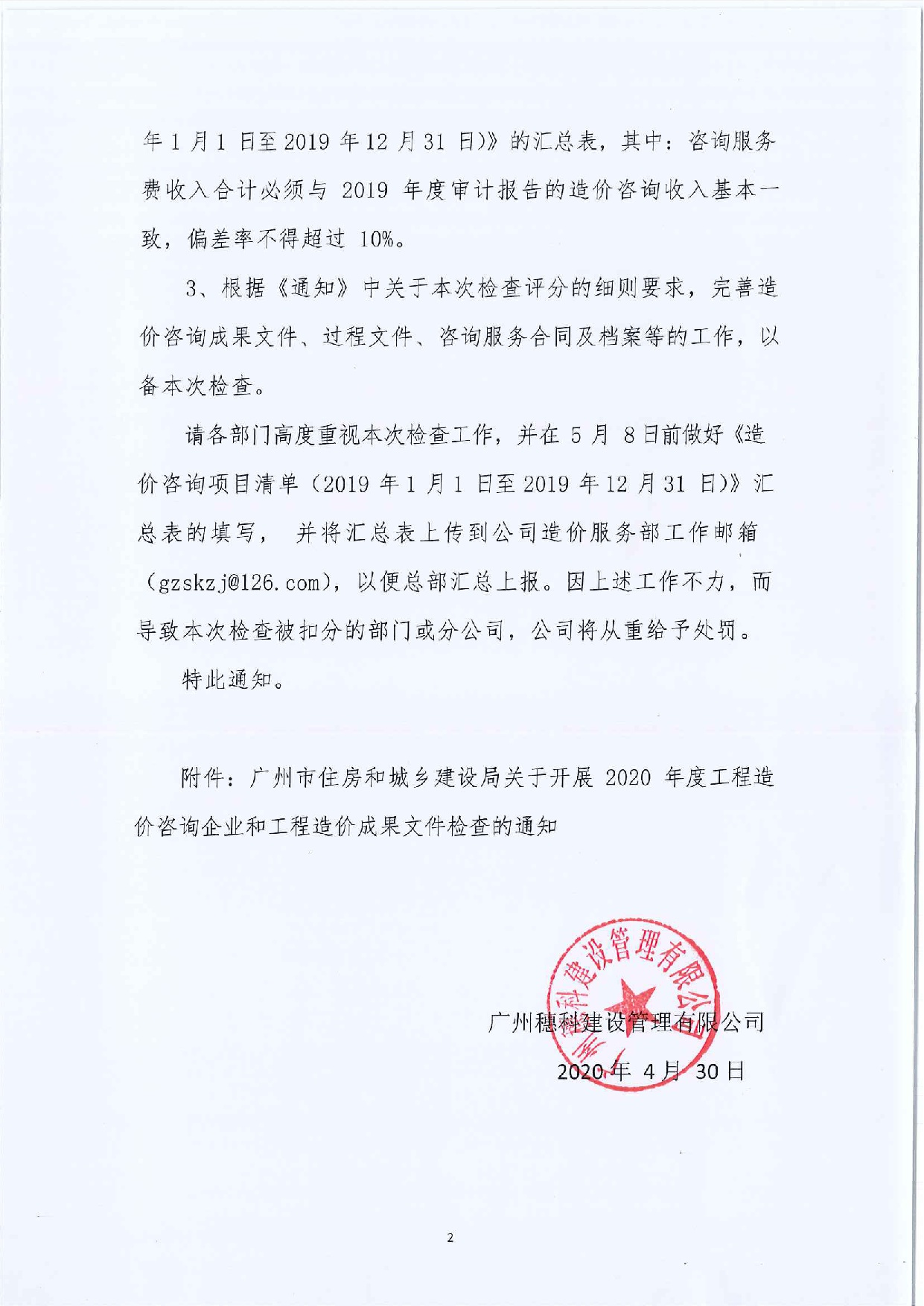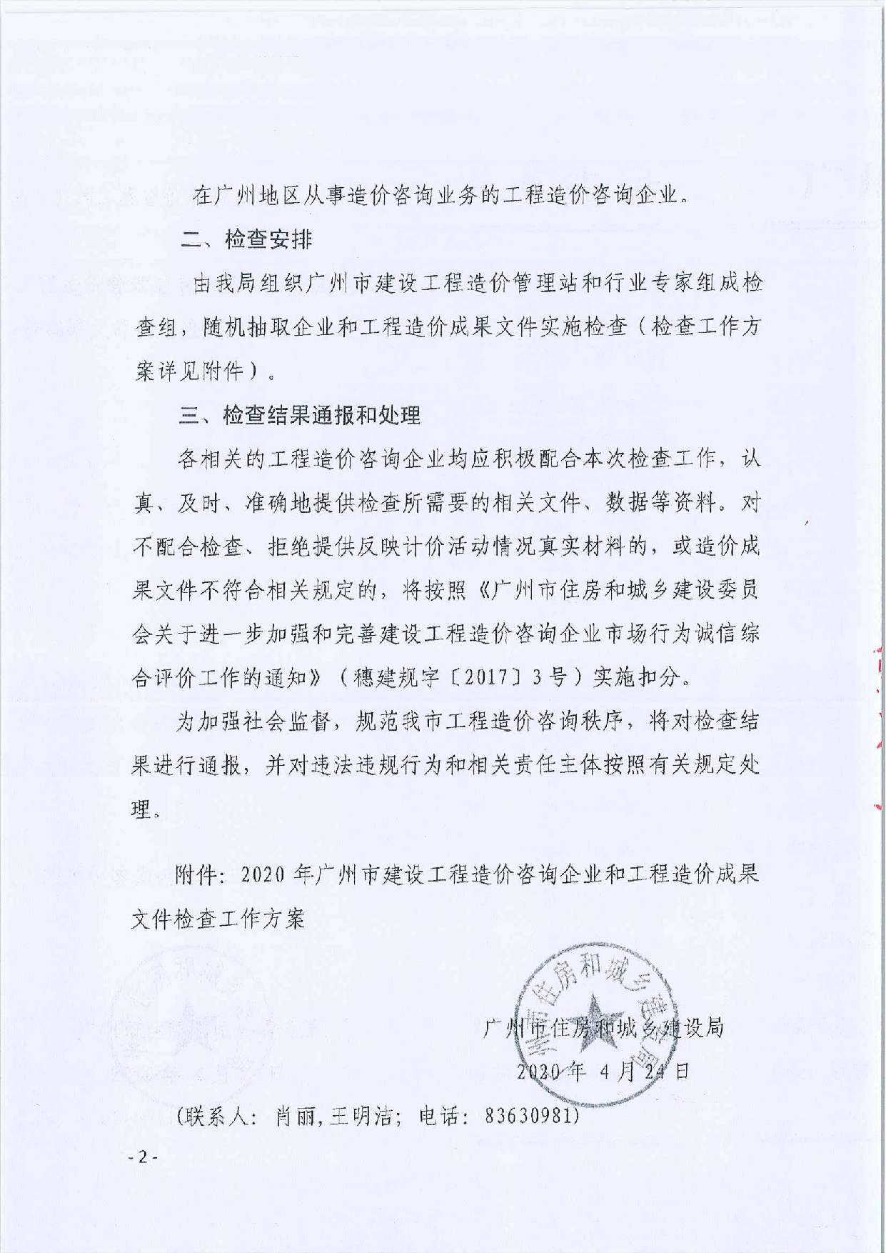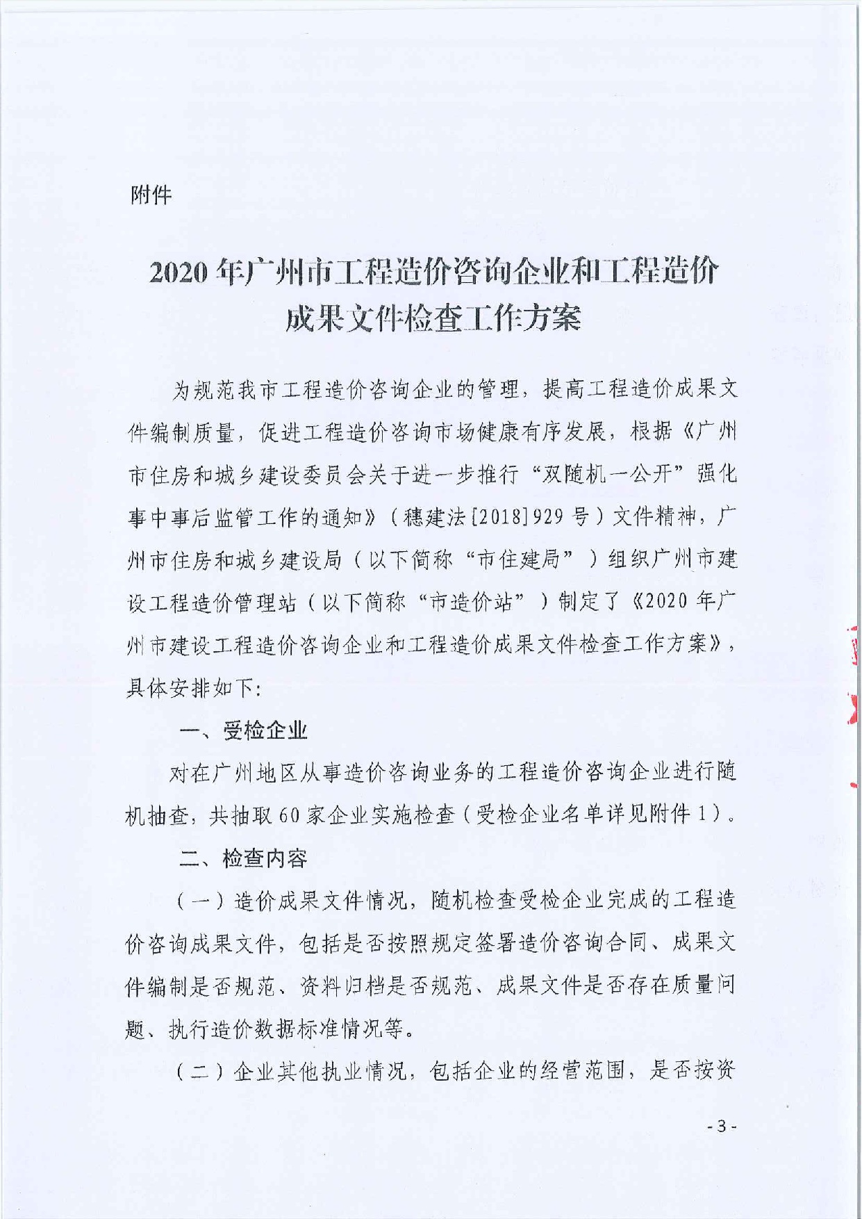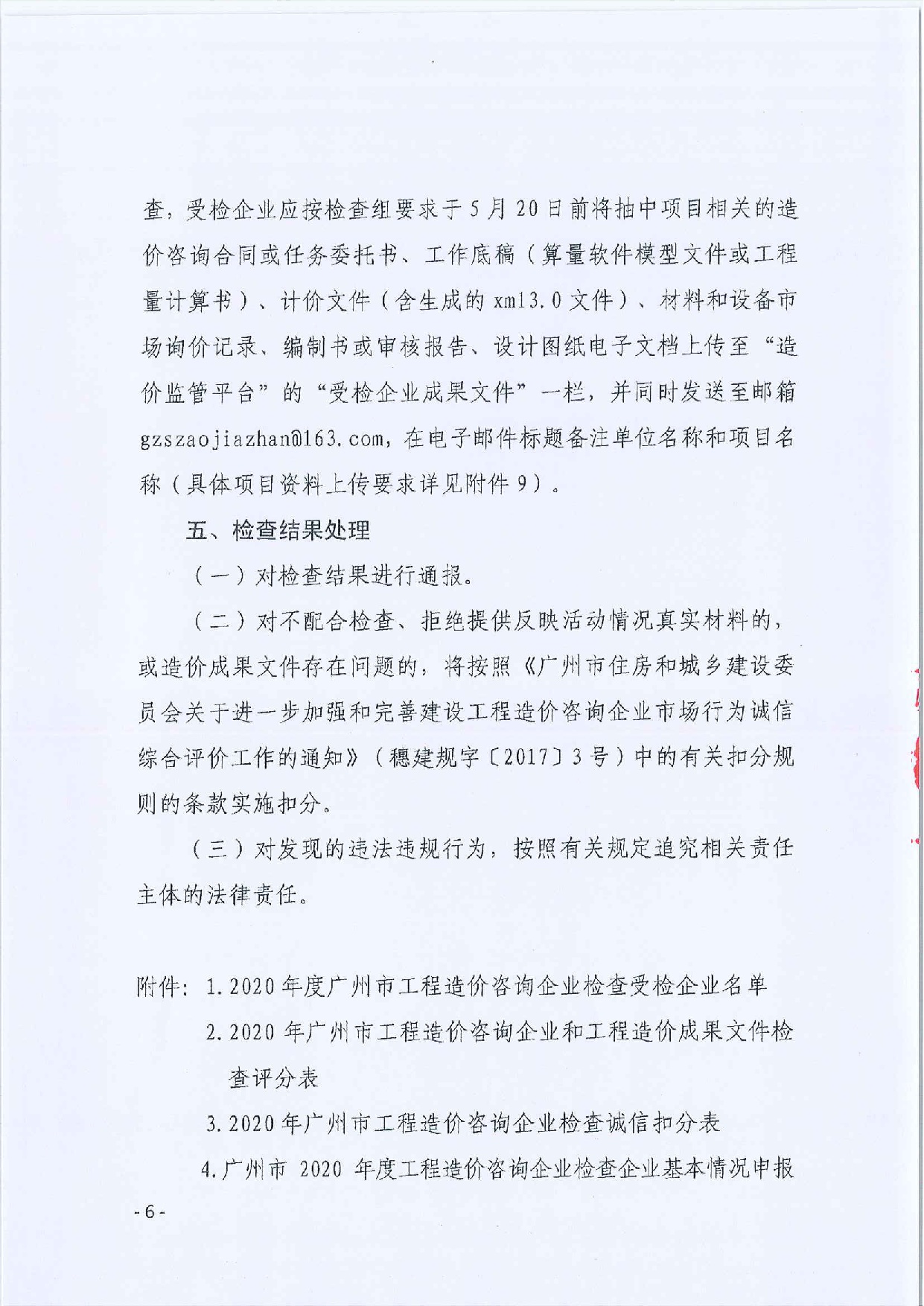 关于做好2020年度工程造价咨询企业和工程造价成果文件检查工作的通知