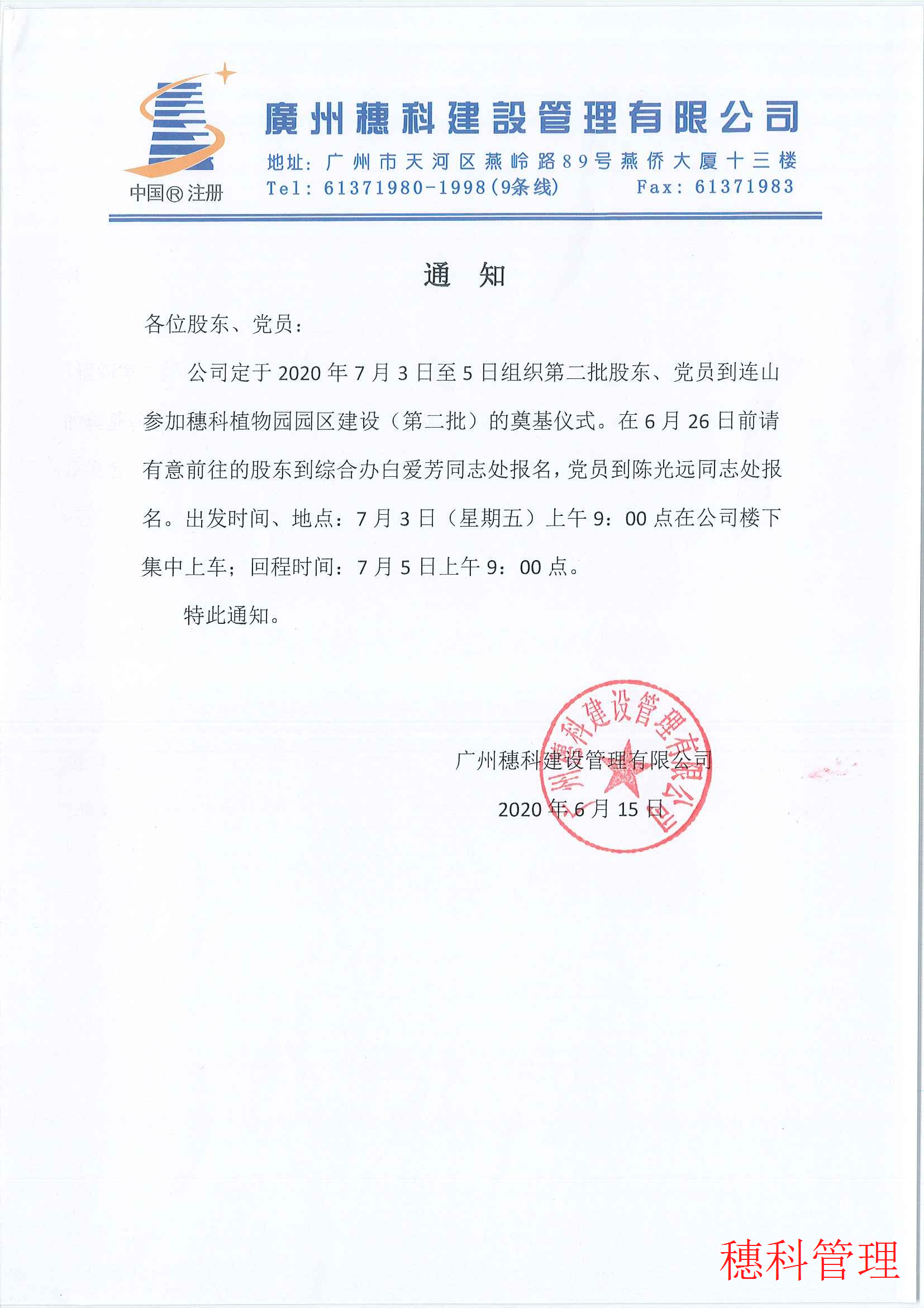 组织第二批股东、党员到连山参加穗科植物园园区建设(第二批)的奠基仪式