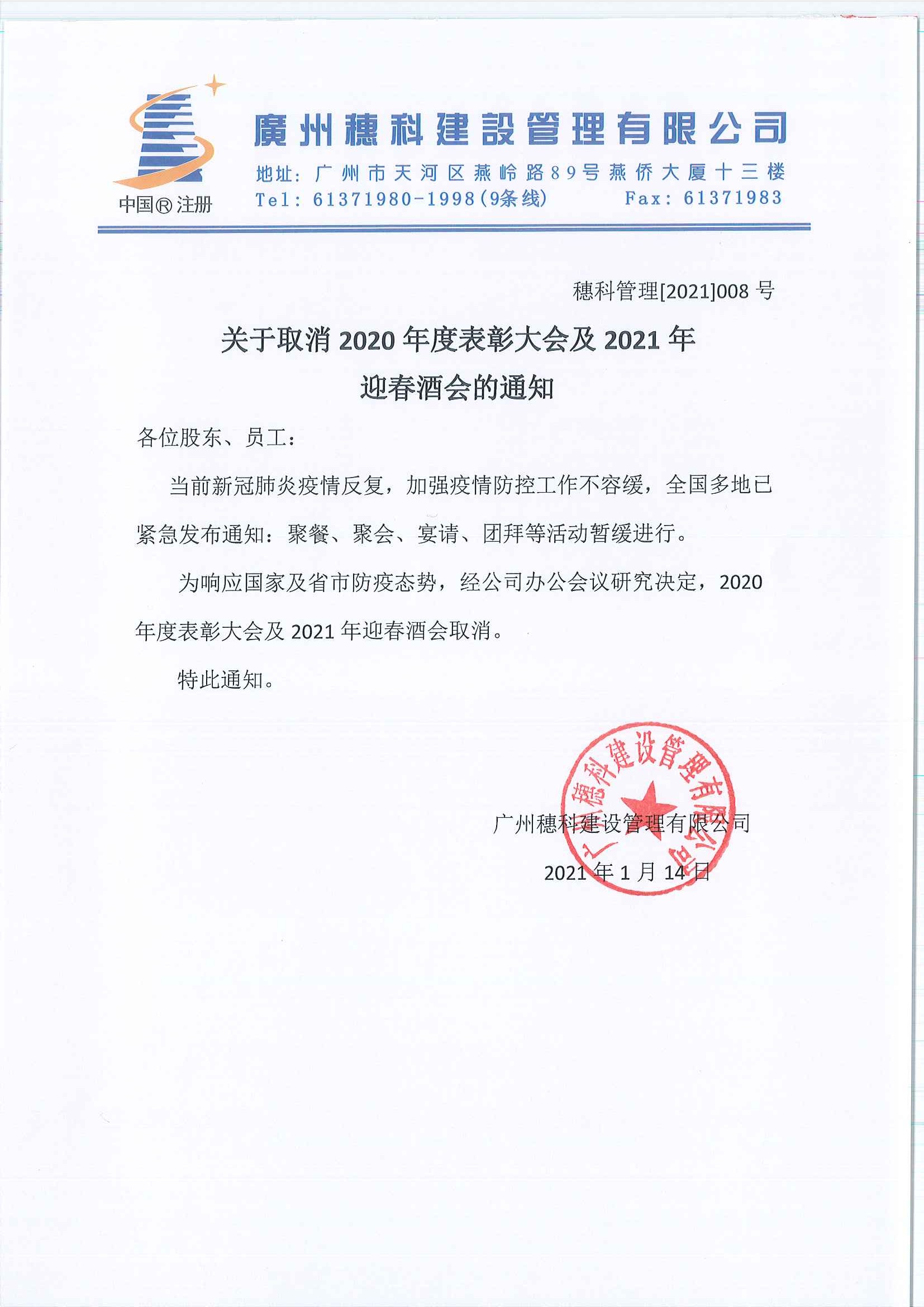 关于取消2020年度表彰大会及2021年迎春酒会的通知