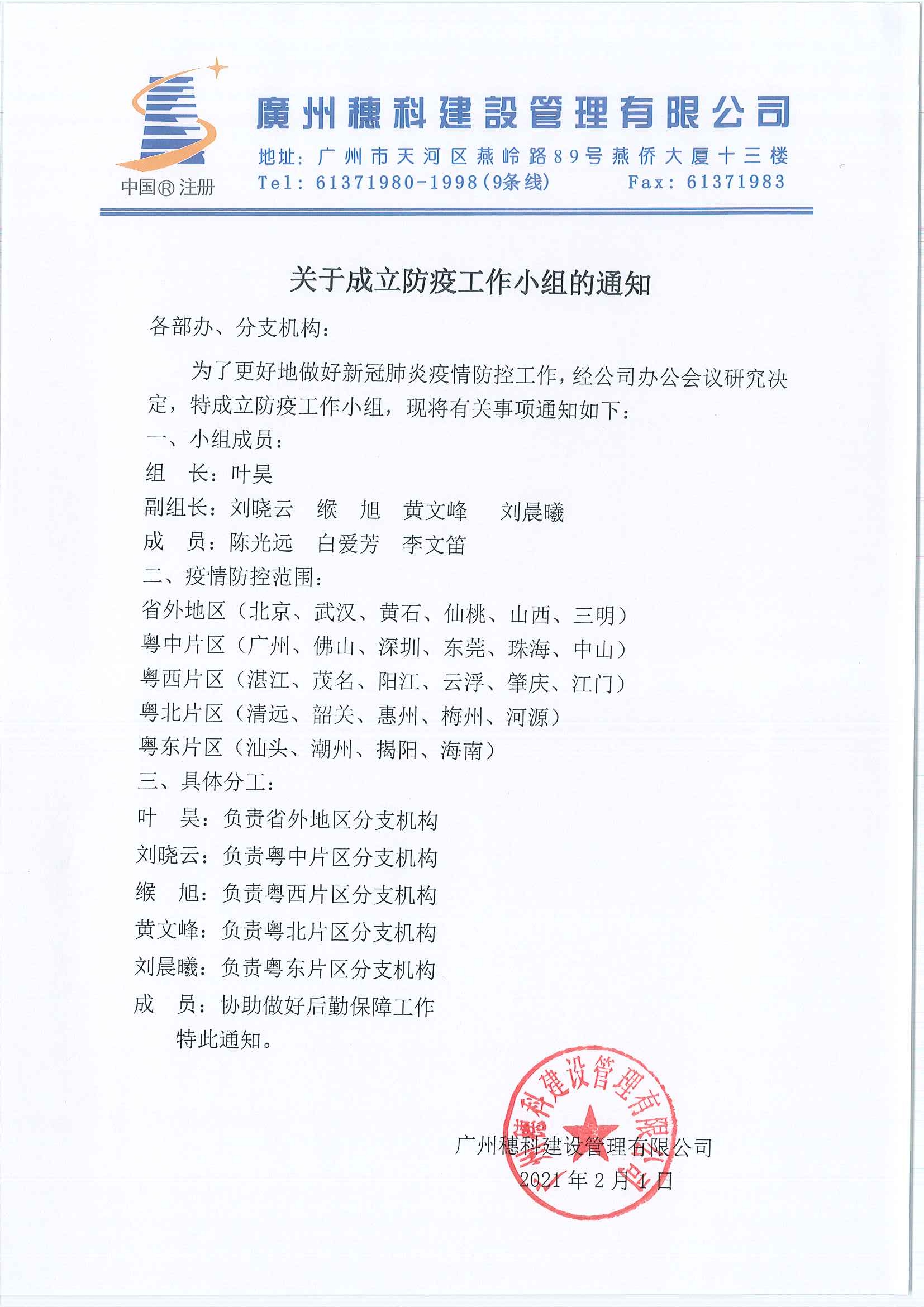 关于成立防疫工作小组的通知