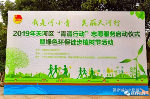 为深入学习贯彻习近平新时代中国特色社会主义思想和党的十九大精神,贯彻落实“绿水青山就是金山银山”的发展理念,推进广州生态文明建设,进一步提高广大团员青年保护河涌及爱绿护绿植的意识2019年03月16日上午9时,穗科团支部十名代表成员积极参加了由共青团天河区委员会组织开展的“我是河小青,美丽天河行”——2019年天河区“青清行动”志愿服务启动仪式暨绿色环保徒步植树节活动。