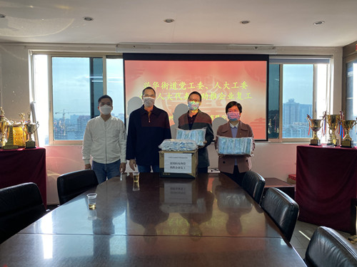 我司天河区人大代表、副总经理黄文峰同志代表公司对天河区人民政府兴华街道办事处领导一行来访并赠予防疫物资表示衷心感谢,帮企业解决了复工复产的“燃眉之急”,让企业开足马力安心生产,并要求公司综合办务必把口罩发放到公司每一位员工手上。
