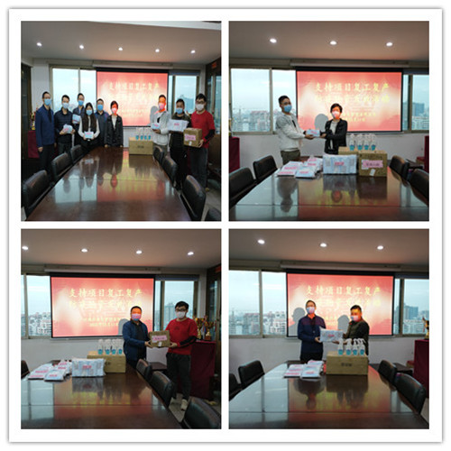 3月11日上午,公司组织了项目复工复产防疫物资发放仪式,将第一批防疫物资发放到每一位分支机构代表手上,领取人员纷纷表示感谢天河区人民政府兴华街道办事处及公司的关爱和支持,将以自己的实际行动,为公司更好的发展而努力,回馈公司的关爱。
