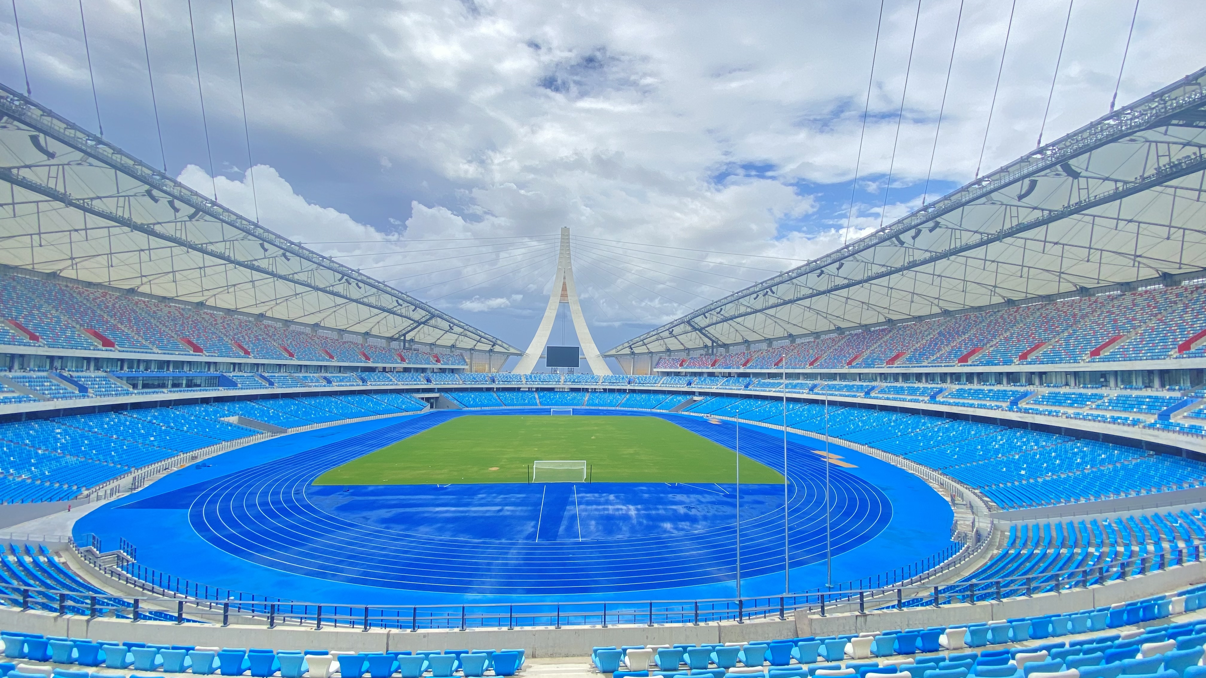 援柬埔寨体育场项目是中柬全面战略合作伙伴关系和共建“一带一路”框架下中柬合作的硕果。体育场整体设计方案由柬埔寨首相洪森亲自选定,体育场两端99米高的人字形吊塔融合了柬埔寨的“合十礼”、古代建筑屋脊等传统元素,通过钢索拉起看台上方的罩棚膜,犹如一艘巨轮扬起风帆。
