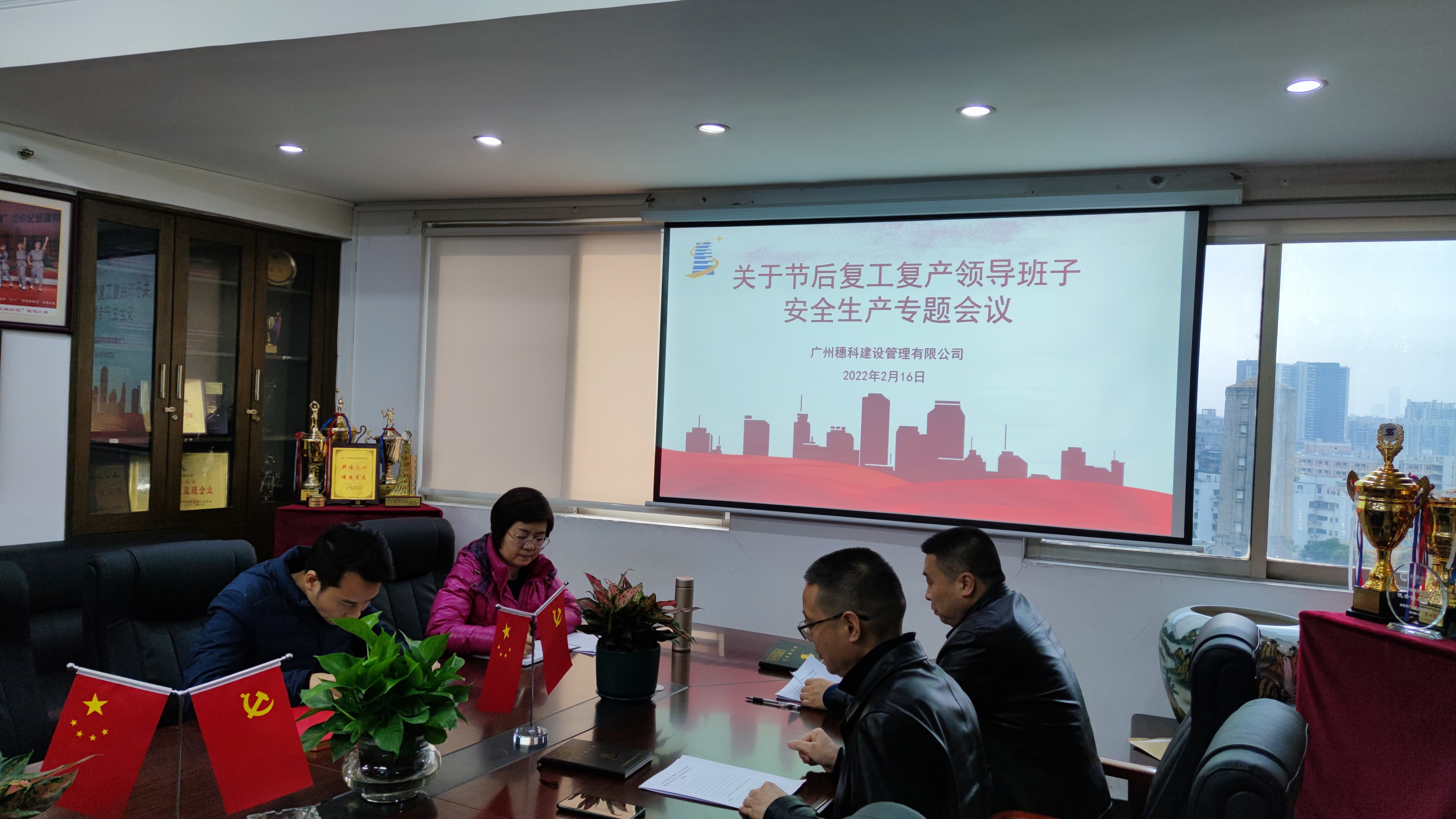 2022年2月16日上午9时,公司领导班子在公司会议室召开关于节后复工复产领导班子安全生产专题会议,会议由法定代表人缑旭主持,常务副总经理刘晓云、技术负责人黄文峰、总经理助理刘晨曦等人参加。会议主要贯彻和落实广东省住房和城乡建设厅发布的《关于切实做好疫情防控和安全防范工作有序推动复工复产的通知》(粤建质函【2022】58号),并根据通知要求对公司在监项目安全生产的管理工作做了进一步研究和部署,扎实有效的守住安全生产底线。