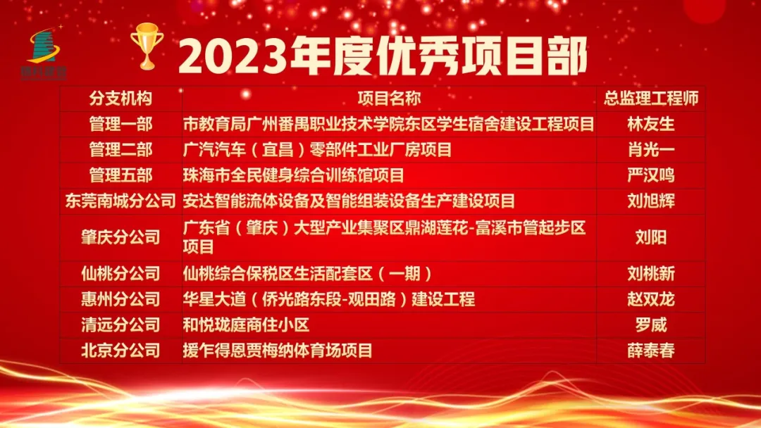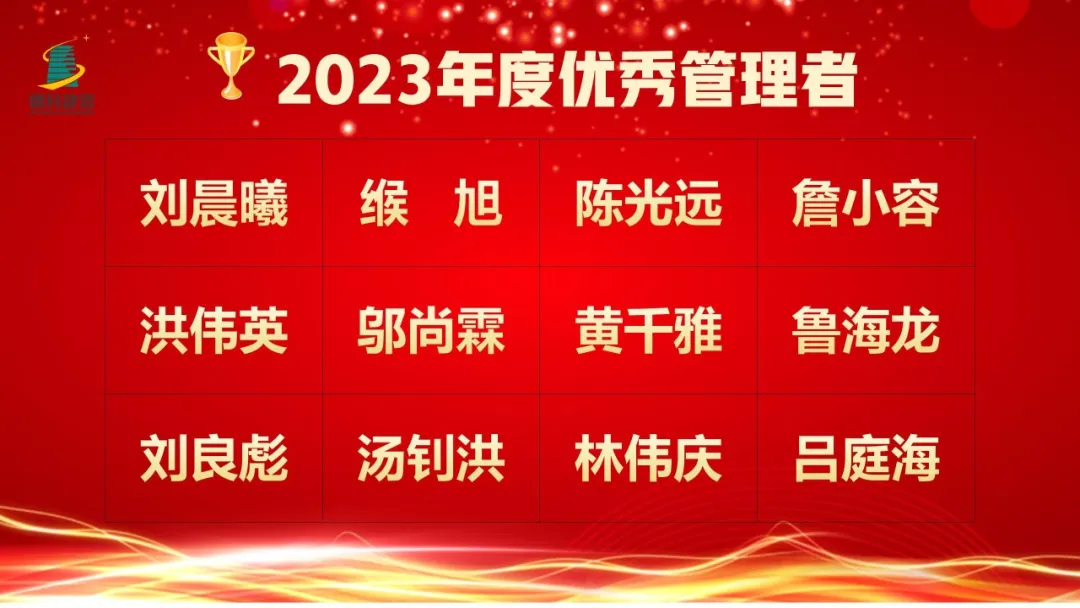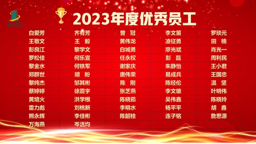 最后,副总经理陈光远宣读了2023年度先进集体及优秀个人名单。公司领导分别对2023年度先进集体及优秀个人进行表彰,对他们在过去一年工作上表现出色、辛勤付出的工作态度表示肯定,也激励全体员工再接再厉,为公司更好发展贡献力量。