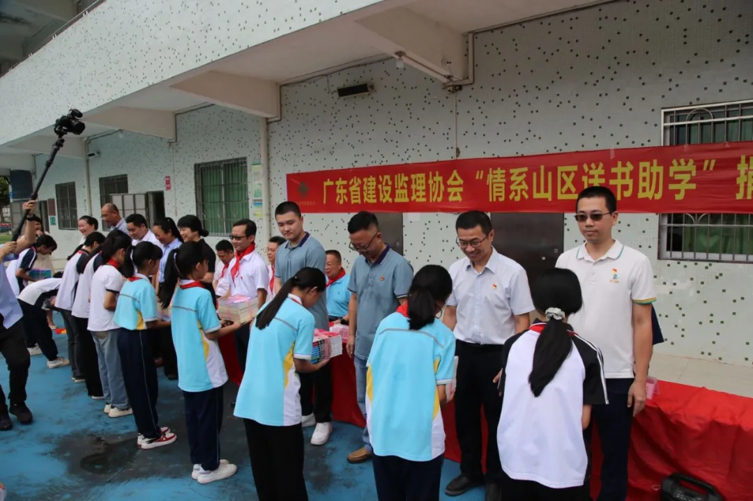 为贯彻落实习近平总书记关于教育扶贫工作指示,积极推动“百千万工程”助力乡村振兴帮助我省粤东西北农村学校解决图书缺乏的困难,促进我省教育公平和城乡义务教育优质均衡发展。6月25日上午,穗科建管党支部书记陈光远、工会委员白爱芳代表公司参加广东省建设监理协会在肇庆市广宁县宾亨镇石涧中亚小学举行的“情系山区 送书助学”捐赠活动。