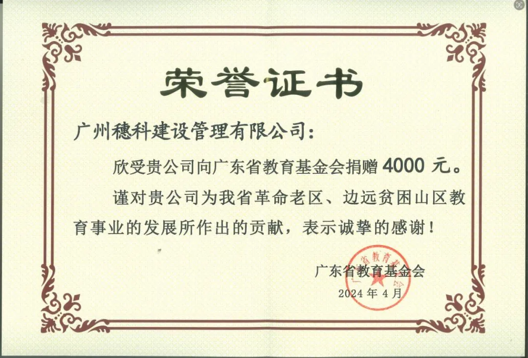 广东省教育基金会向我司代表颁发捐赠证书