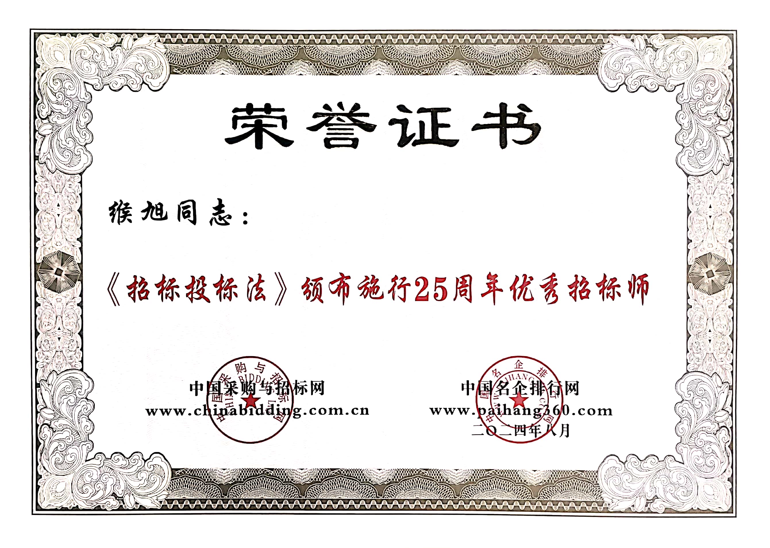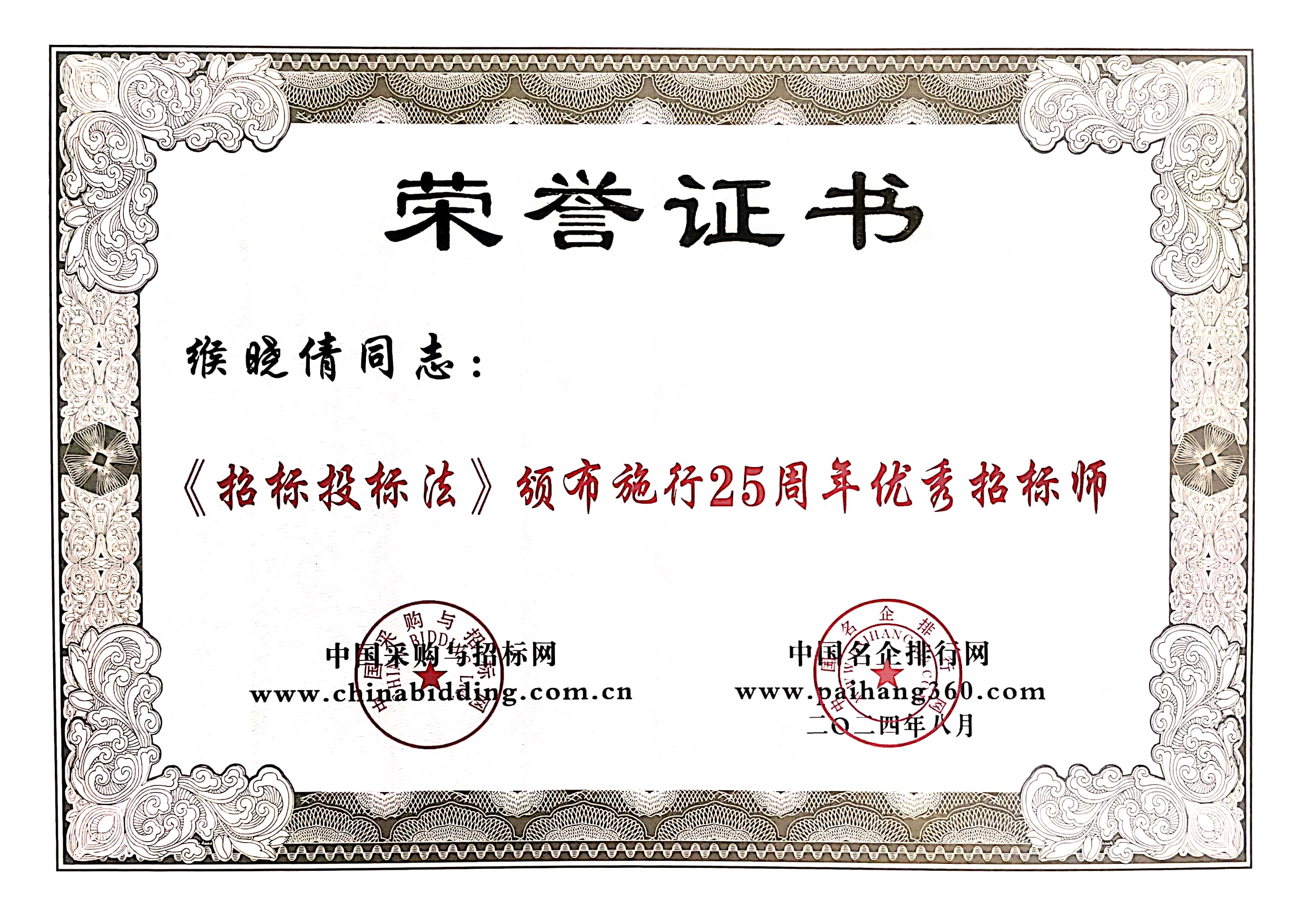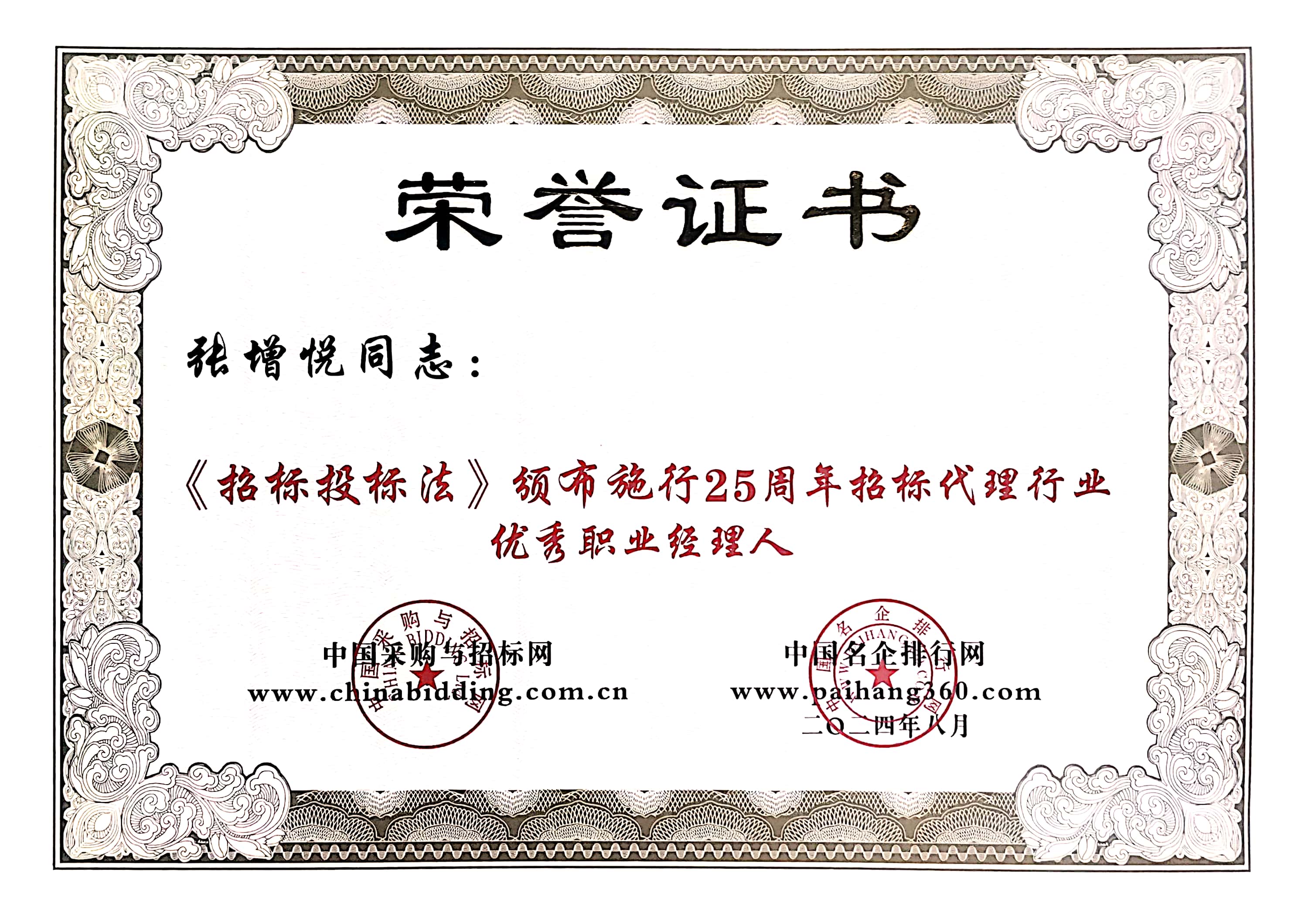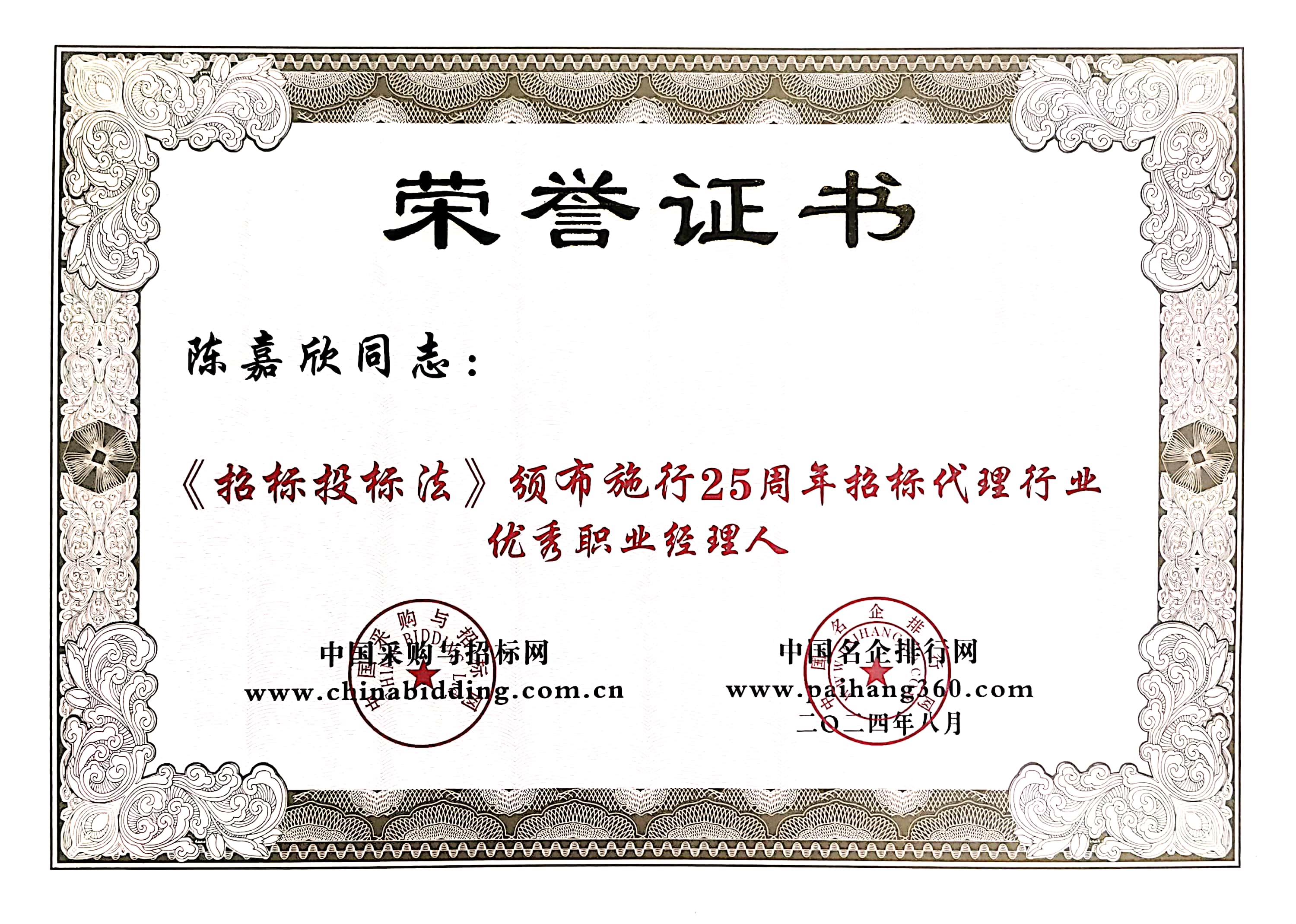 《招标投标法》颁布施行25周年招标代理行业优秀职业经理人