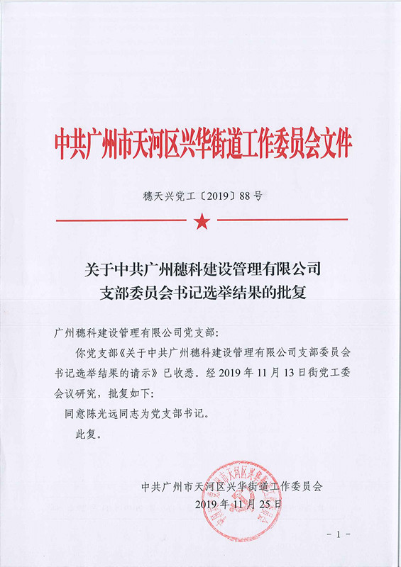 关于对中共广州穗科建设管理有限公司支部委员会书记选举结果的批复
