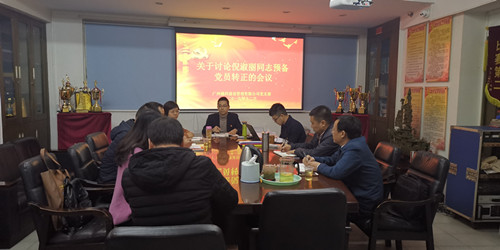 2019年12月06日下午15时,广州穗科建设管理有限公司党支部召开了2019年度第四季度党支部会议,会议由党支部书记陈光远同志主持,共10名党员参加会议。会议还邀请了兴华街党工委浦指导参加。会议共分为四个议程:一是讨论并表决倪淑丽同志预备党员转正的决定;二是介绍“不忘初心、牢记使命”主题教育开展工作的情况汇报;三是开展党组织专题生活会及民主评议党员会;四是总结2019年党支部工作情况及汇报2020年党支部工作计划。