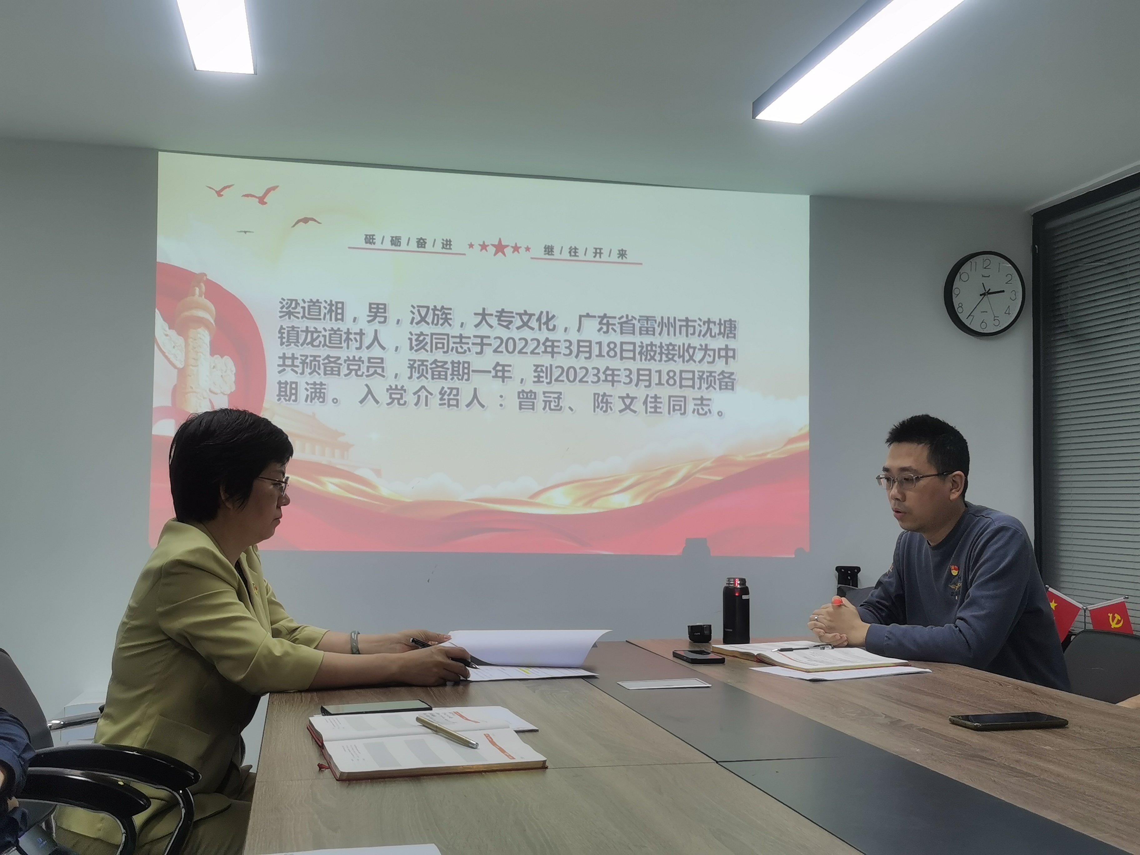 为确定穗科五四青年节登山比赛活动方案及表决梁道湘同志预备转正事宜。3月27日,穗科党支部在公司会议室召开了2023年第二次党支部大会。党支部书记陈光远同志主持会议,中共党员、预备党员、积极分子、工会代表以及共青团员共15人参加。